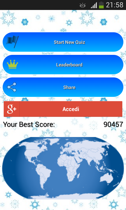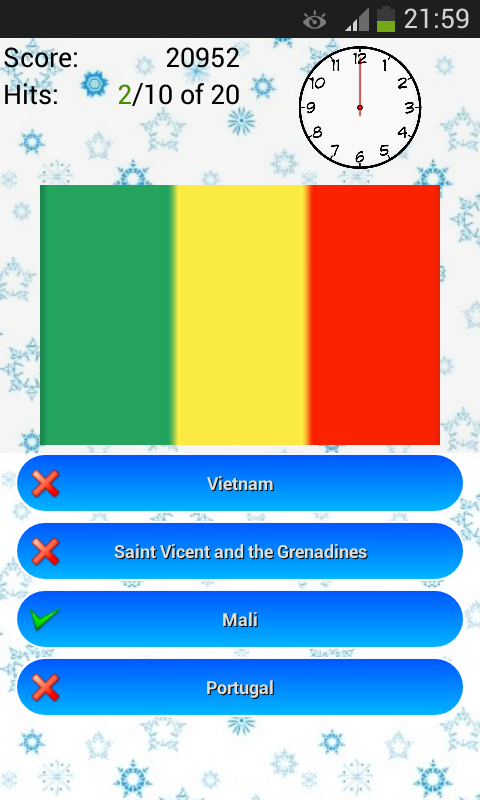 Download the fantastic quiz of flags from around the world! For all those who love to travel, to live the explorer in you. Test your intelligence. Find out what score you get. How does it work? Start the quiz and you will be shown 20 random questions. For each question, you will need to associate the flag with one of the 4 countries that will be shown. To earn a lot of points, you have to respond in the shortest possible time. Put your skills to the test with a quiz dedicated to those who love to travel. The international classification will allow you to know your skill.