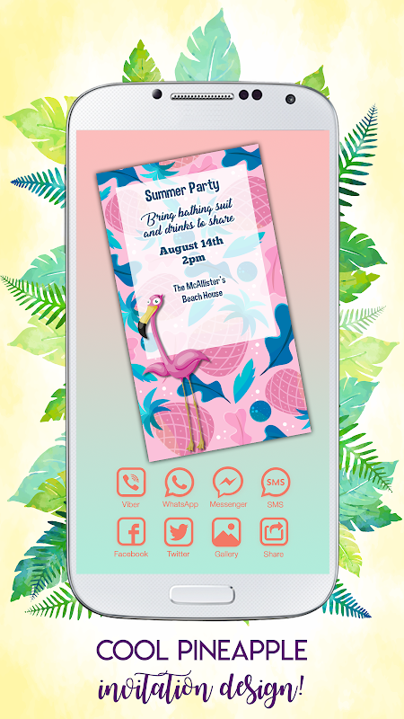 Make personalized “party invitations”, beautiful “birthday invitations” with the newest free greeting card maker! Get 💗 “Flamingo Invitations” 💗 now and use the latest e card maker to send unique graduation party invitations, “wedding invitations” and cute birthday cards. Discover exotic pineapple theme cards, decorate your “flamingo birthday invitation” and personalize your greeting card with names and messages! Get this “pool party invitation maker” and design the best tropical summer party invitation! This is a greeting cards app full of Hawaii themed invitations, Hindu wedding invitation cards and kawaii birthday invitations! Use it to make a retirement invitation card, flamingo baby shower invitations and other flamingo themed invitations - impress everyone! Your guests will love this luau invitation maker free cards ideal for each occasion! Just choose the “greeting card” you like, select stylish fonts for pictures, colors and start typing! Decorate photos as you wish in the coolest tropical flamingo invitation template!