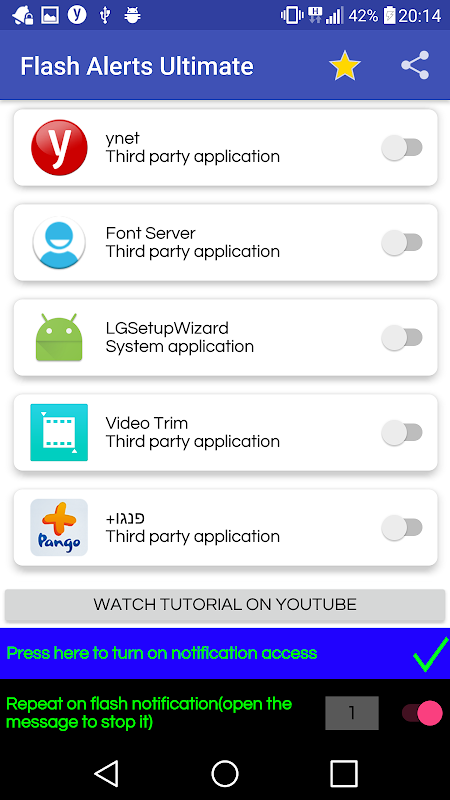 Flash Alerts Ultimate از سرویس دسترسپذیری Android در دستگاههای قدیمیتر بهعنوان پشتیبان برای شناسایی اعلانهای ورودی و فعالسازی هشدارهای فلاش استفاده میکند. این سرویس فقط برای تشخیص دریافت اعلان استفاده میشود — هیچ محتوای پیامی یا داده شخصی را نمیخواند، ذخیره نمیکند یا ارسال نمیکند. تمام پردازشها بهصورت محلی روی دستگاه شما انجام میشود.
