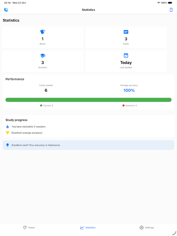 هر جلسه مطالعه به شما کمک میکند تا از طریق تکرار و یادگیری تعاملی، حافظه خود را تقویت کنید. در پایان هر جلسه، میتوانید آمار دقیقی را برای درک پیشرفت خود مشاهده کنید و آمار جهانی، بهبود بلندمدت شما را در طول زمان نشان میدهد.