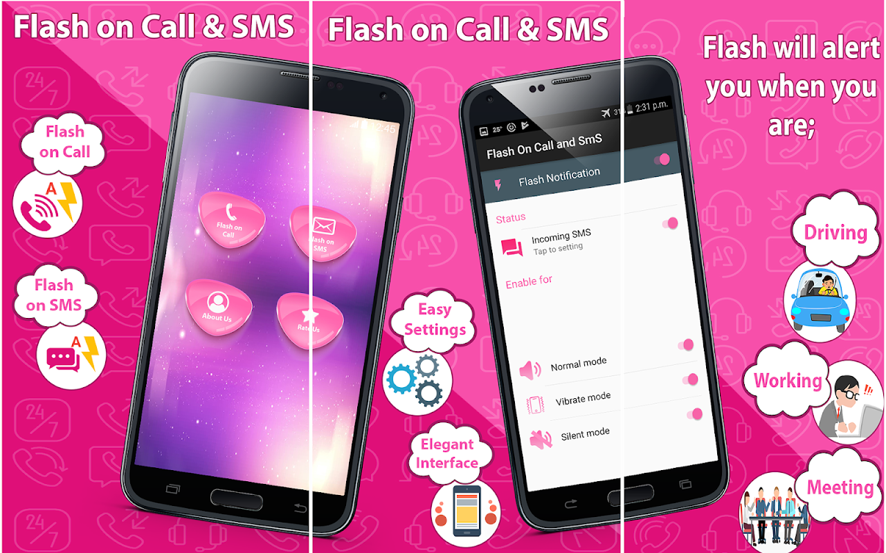 ★ Free Beautiful colorful LED Flash alert on call and SMS and message alerts application in Meetings.