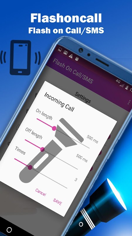This Flash on call and SMS will notify you via mobile phone’s back light flash alerts , the back side flashlight will blink giving incoming call alerts and sms alerts. LED call and sms blink LED indicator. See the blinking flash alert notifications when phone rings with an incoming call or incoming text message.