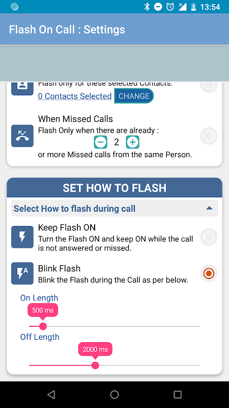 اما گاهی اوقات تنها تنظیم حالت رینگر کافی نیست، فرض کنید شما گوشی خود را در حالت سکوت (یا چشمک زن که حالت) تعیین کرده اند و تنها می خواهید به فلش هشدار (پلک زدن) زمانی که 2 یا چند تماس از دست رفته از همان شخص وجود دارد، چرا ممکن است برخی از اضطرار.