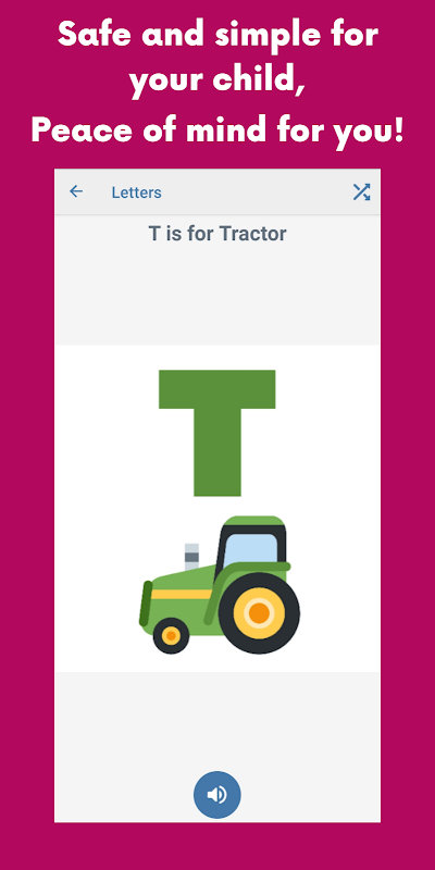 به کودک خود کلمات جدید ، حیوانات ، رنگها ، اشکال ، شمارش و موارد دیگر را بیاموزید! یک برنامه مرتبا ساده ، سرگرم کننده و آموزشی! این یک روش عالی برای سرگرمی و آموزش همزمان کودک شماست! کودک خود را یاد بگیرید که یاد می گیرد! کودک شما آن را دوست خواهد داشت و شما می توانید خیالتان راحت باشد و بدانید که هرگز تبلیغات ناخواسته یا خریدهای درون برنامه ای برای ضربه زدن تصادفی فرزند شما انجام نمی شود. تا آخر عمر از آنها تبلیغ خواهد شد ، بیایید تا زمانی که ممکن است آن را به تعویق بیندازیم!