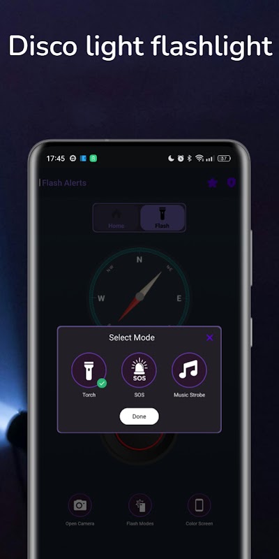 Disco light flashlight. Turn on the flashlight with a single tap, turn on your favorite music, and enjoy the cool disco effect strobe lights