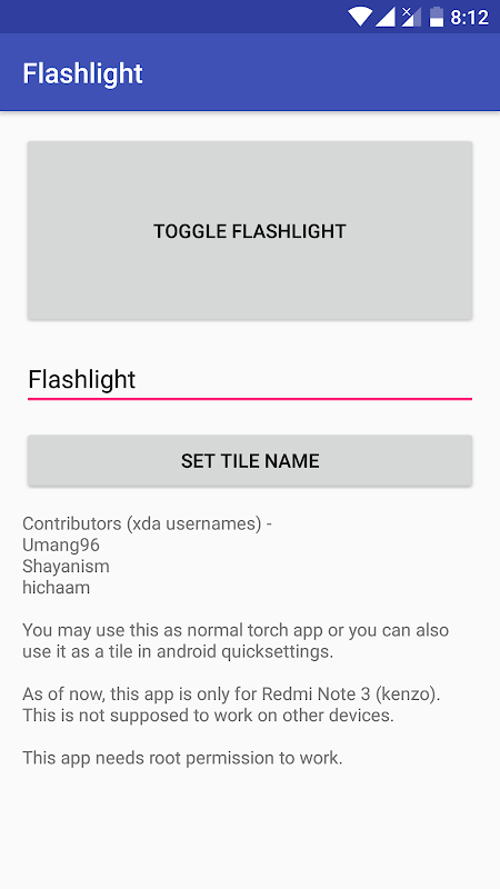 This app is only for Redmi Note 3, this fixes nougat flashlight bug, needs root.