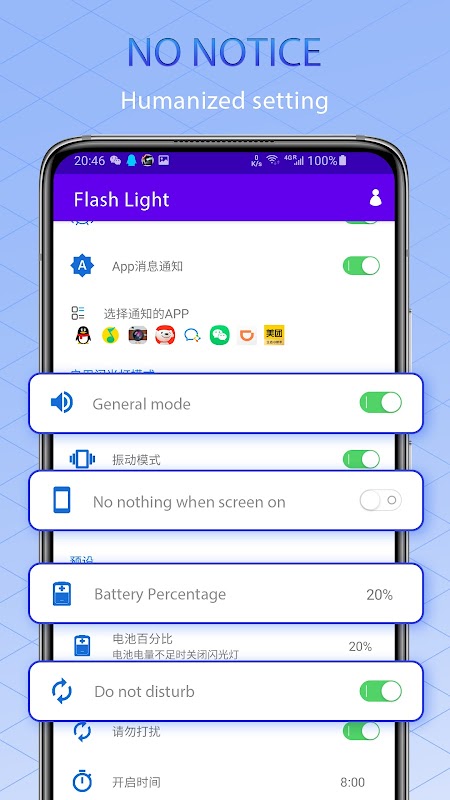 فلاش تماس ورودی: پس از روشن شدن فلاش تماس ورودی، پس از دریافت تماس ورودی، چراغ به طور خودکار روشن میشود، که میتواند به شما کمک کند در مواقعی که زنگ زدن و پاسخگویی ناخوشایند است، تماسهای ورودی مهم را از دست ندهید. البته در هنگام صبح که تلفن همراه خود را پیدا نمی کنید نیز می توانید تماس بگیرید. جایی که موبایل چشمک می زند، به اندازه کافی هوشمند است!