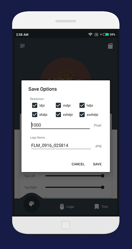 - آرم خود را با اندازه سفارشی ذخیره کنید