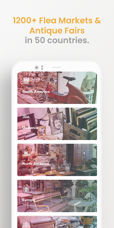 Fleamapket Premium توسط صدها متخصص عتیقه در اروپا و ایالات متحده آمریکا به عنوان ابزار نهایی برای برنامه ریزی سفرهای خود مورد تحسین قرار می گیرد. برای خرید عتیقهجات و عتیقهجات قدیمی، بیش از 1200 بازار و نمایشگاه عتیقه فروشی نمادین در 50 کشور را مرور کنید و به ابزار ما دسترسی داشته باشید تا تجربه خود را در بازار ککفروشی افزایش دهید.