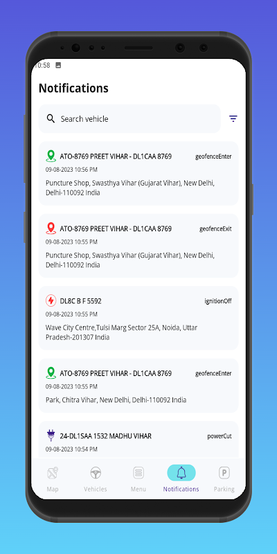 Geofencing: ایجاد geofences سفارشی و دریافت هشدارهای فوری هنگام ورود یا خروج وسایل نقلیه به مناطق خاص، افزایش امنیت و کارایی عملیاتی.