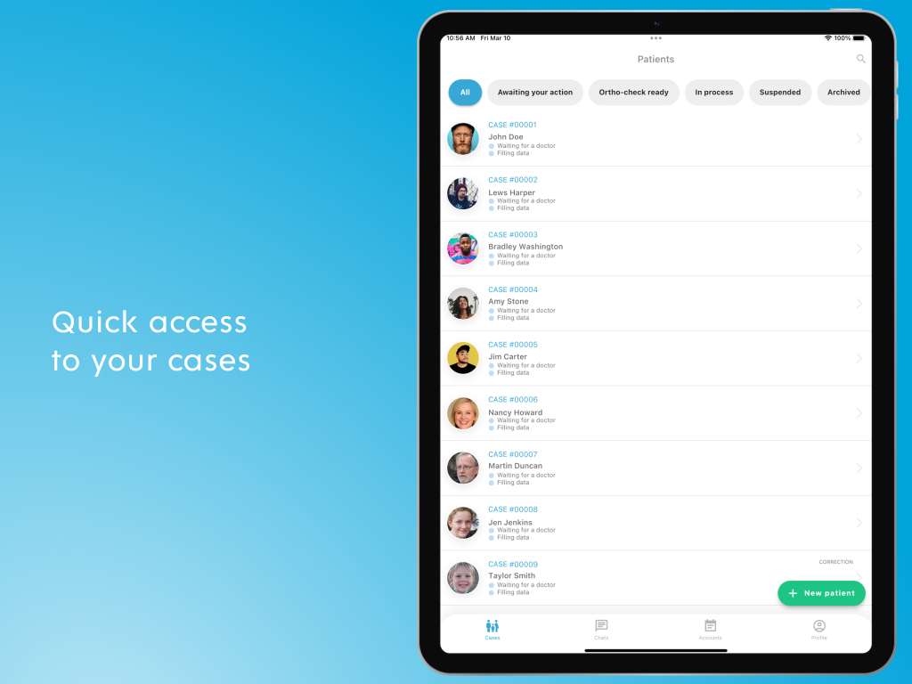 دسترسی به این اپلیکیشن به مشتریان مجاز شرکت - ارتودنتیستها و پروتزیستها - و همچنین بیمارانی که توسط پزشکان معالجشان دعوت شدهاند، اعطا میشود.