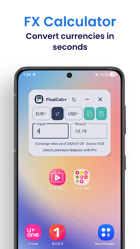 در حالت مبدل ارز، کافیست مبلغی را وارد کنید تا فوراً آن را به ارز دیگری تبدیل کنید - مناسب برای خرید، سفر و بررسی پرداختهای بینالمللی.