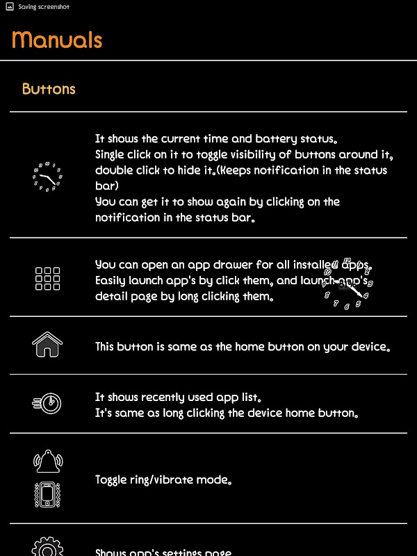 Default buttons - home/multitask/camera/flash/sound mode(ring&vibrate)/all apps/lock screen