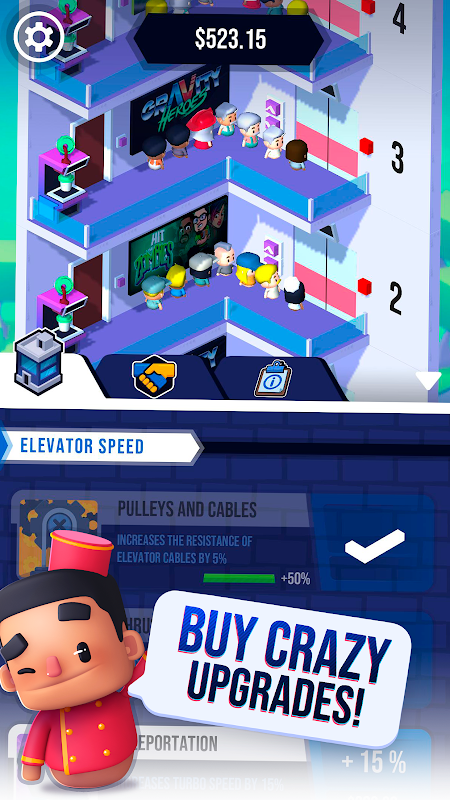 Floor Please یک بازی بیکار است که در آن مسافران را به اطراف ساختمان خود حمل می کنید و نکاتی را کسب می کنید. درآمد کسب کنید و ساختارهای ساختمان خود را ارتقا دهید ، مانند: