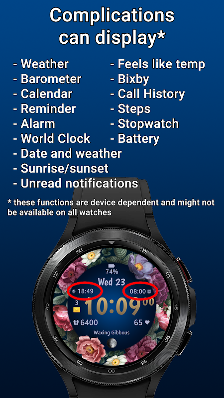 لطفاً به خاطر داشته باشید که آماری که این عارضه میتواند نمایش دهد، و برنامههایی که میتوانند از میانبرها راهاندازی شوند، وابسته به دستگاه هستند و ممکن است در همه ساعتها در دسترس نباشند یا ممکن است از ساعتی به ساعت دیگر متفاوت باشند.