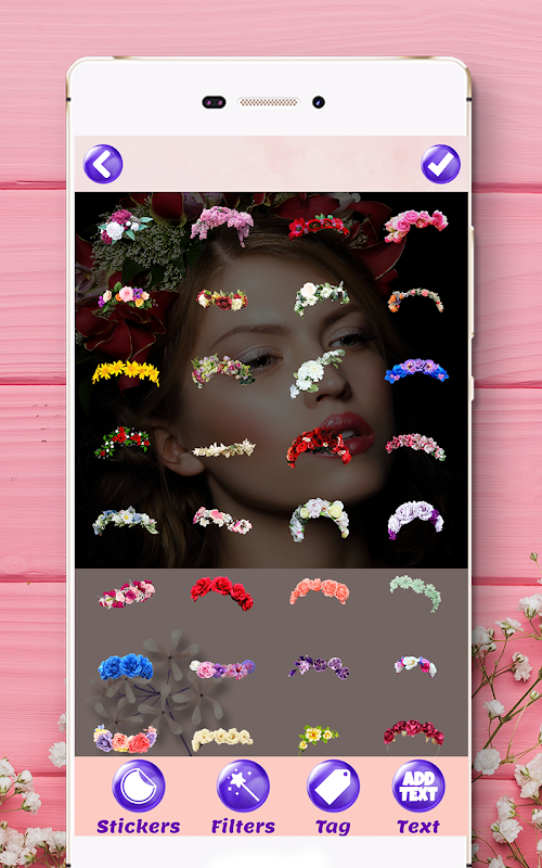 Flower Crown Photo Editor is a new application snap flower crown stickers to add to your perfect photo in a second.Select our Flower Crown catalogue and make your choice among various Flower Crown patterns designs.Flower Crown Photo Editor is an photo editor app that that offers you a variety of “photo stickers” to add to your photos and give a virtual makeover to your hair in a sec.