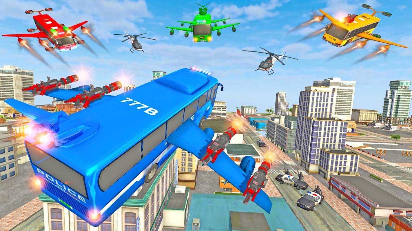 Be flying bus simulator to play the police robot games of futuristic bus battle.