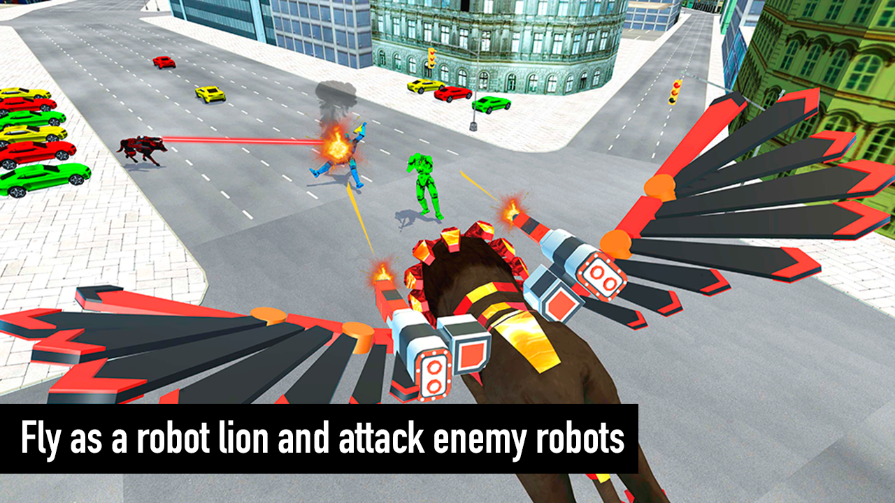 The flying lion robot transform game is here. Enjoy robot shooting game today