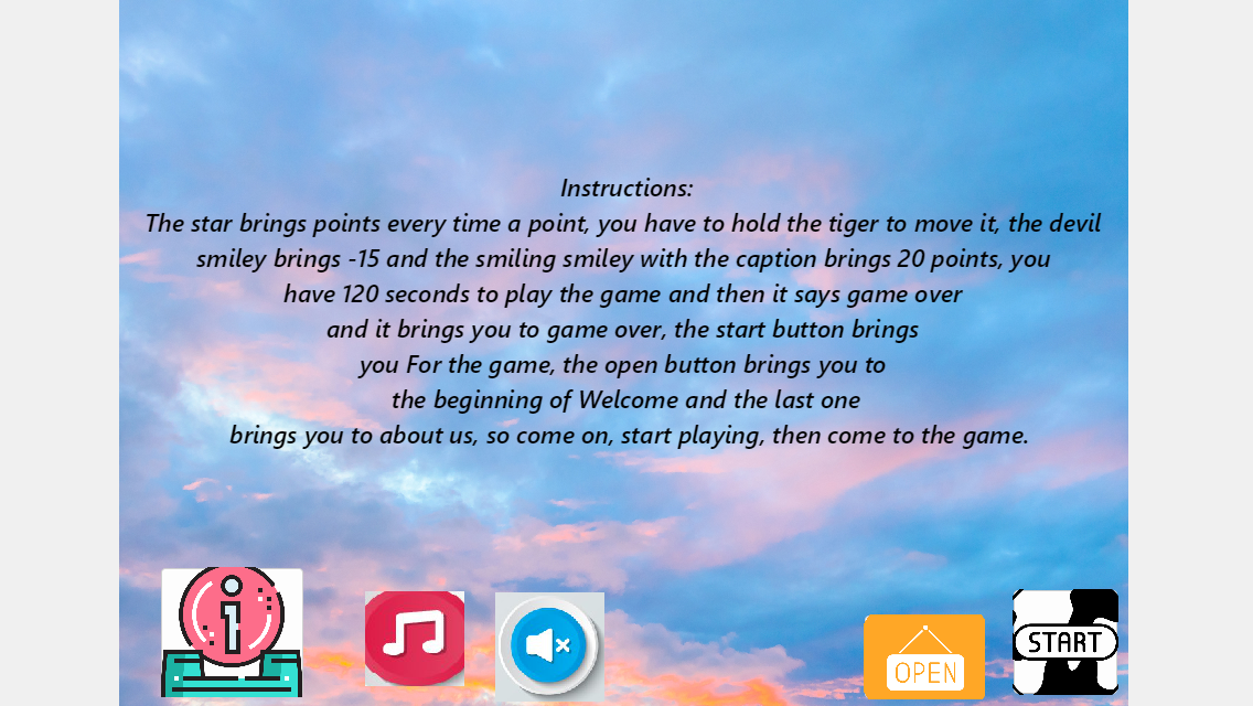 این برنامه شامل یک ببر در حال پرواز است که امتیاز جمع آوری می کند. دستورالعمل گنجانده شده است. توسعه یافته توسط Barel Tsitona.