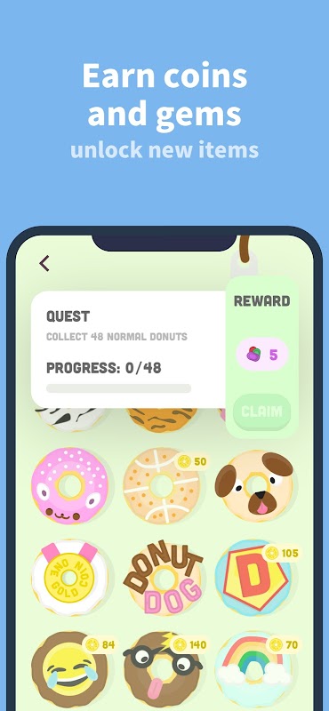 4) دستور العمل های جدید دونات، دستگاه های دونات و پس زمینه برنامه را با ارتقاء سطح و رقابت با دوستان باز کنید.