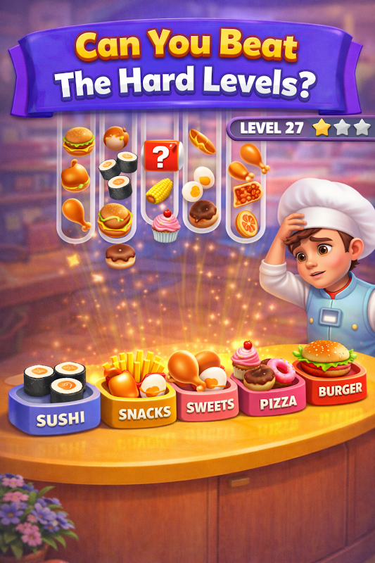به دنیایی پر از خوراکیهای خوشمزه، رستورانهای شلوغ و سرگرمی بیپایان مرتبسازی قدم بگذارید. ماموریت شما ساده اما فوقالعاده اعتیادآور است: اقلام غذایی را در دستهها و بشقابهای صحیح خود مرتب کنید تا هر سینی کاملاً با هم جور شوند!