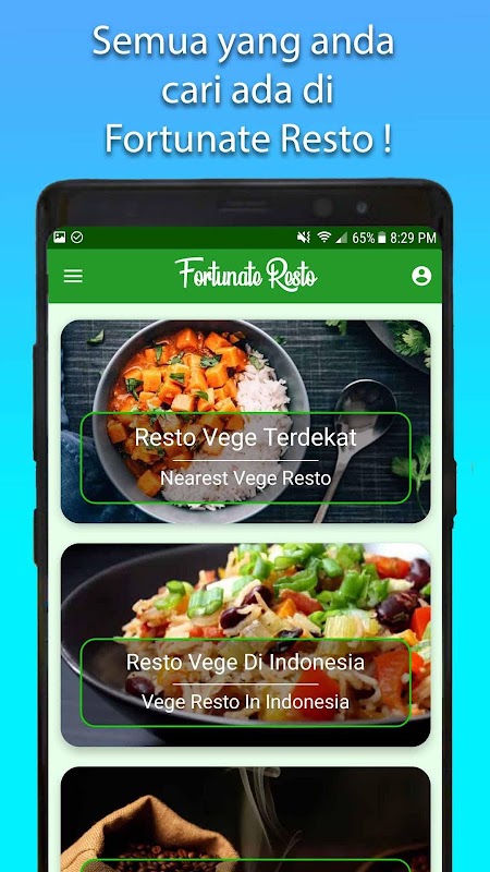 برنامه یاب vege ما در جستجوی هدف کاملاً متفاوت است. این یک رابط کاربری ساده به شما می دهد و زمان زیادی را در پیدا کردن رستوران vege خود در اندونزی صرفه جویی می کنید. همه چیز فقط با یک کلیک لذت ببرید و امیدوارم این برنامه بتواند در نحوه یافتن رستوران وگان گیاهی مورد علاقه خود در اندونزی تفاوت ایجاد کند.