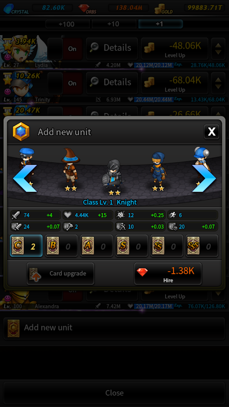 6. When reaching level 100, units can reincarnate. Reincarnation make units level 1, but all growth points will remain and you will receive Crystals as a reward.