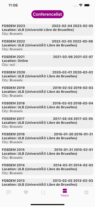برنامه ای که می توانید از آن برای مشاهده رویدادهای فعلی و گذشته Fosdem استفاده کنید