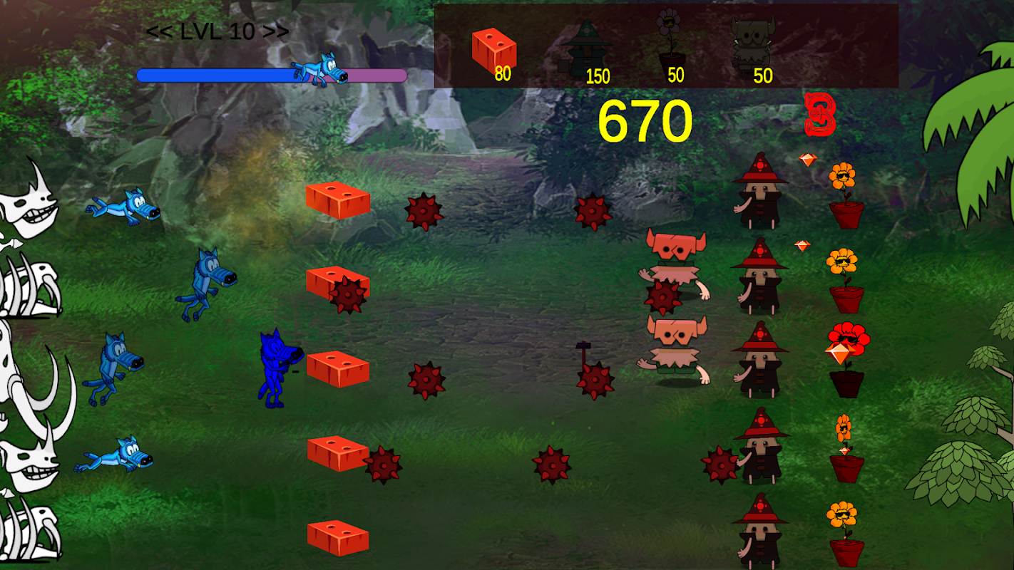 The fox will attack.He can walk,run or jump and can bite,eat and use the weapon