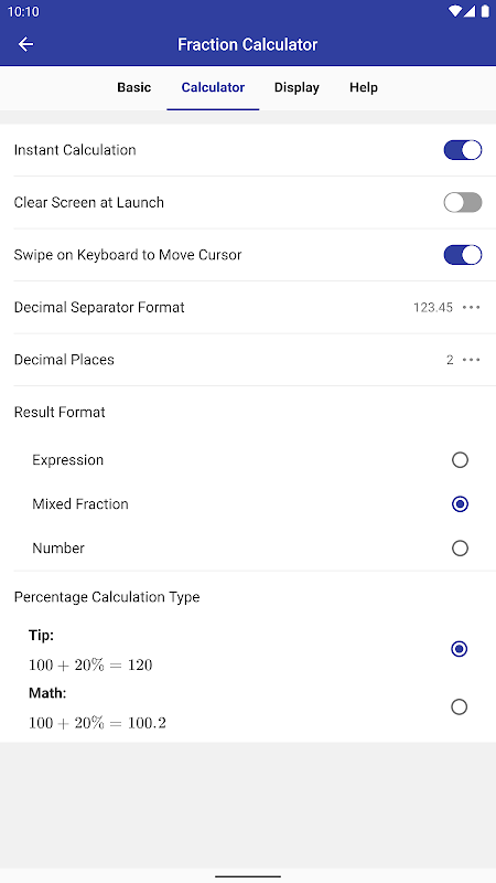 یک ماشین حساب کسری بهتر با راه حل دقیق، پاسخ را در قالب کسری، کسر مختلط یا عدد دریافت کنید.