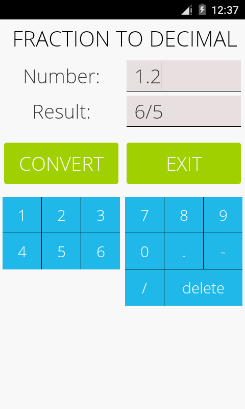 این ماشین حساب ریاضی رایگان قادر به تبدیل کسر به عدد اعشاری است. شما می توانید کسرهای عمومی (مانند 1/2) و اجزاء مخلوط تبدیل (مانند 2 4/5).