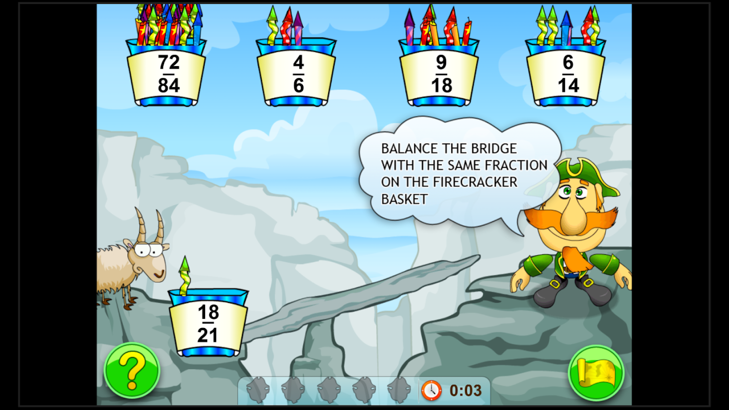 در این جزیره دوم، دزدان دریایی به سراسر مغاک ته دریافت کنید. به منظور انجام این کار، آنها باید پل با استفاده از سبدهای ترقه تعادل می باشد. در این بازی بازیکن کمک دزدان دریایی در انتخاب یک سبد با کسری معادل.