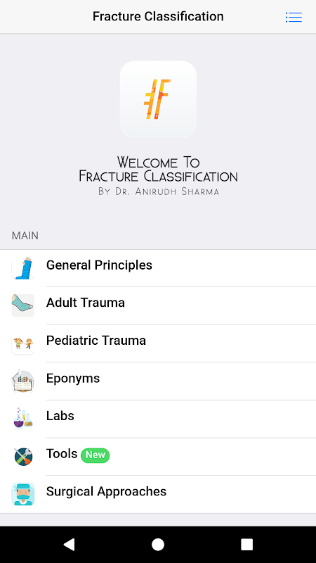 شکستگی بندی برنامه شماره یک جیب ابزار مرجع برای راه سریع و آسان برای دسترسی به سیستم های طبقه بندی های مختلف موجود در تروماتولوژی امروز است. این برنامه چیزی بسیار ساده و در عین حال ارزشمند به هر دو ساکنان و پزشکان به طور یکسان ارائه می دهد. محتوای تا به تاریخ این برنامه همراه با یک سیستم بازخورد قوی و توانایی به تکامل آن مورد علاقه هر کس می سازد. بهترین بخش آفلاین * در دسترس بودن محتوای هر زمان که شما به آن نیاز دارید در حال حرکت است. مباهات طراحی بصری و UI سریع، این برنامه شما می توانید بر روی کار شمارش زمانی که شما به آن نیاز دارید بیشتر است. بهترین از همه، این برنامه با آخرین دستورالعمل های ارتوپدی در روز شده است.