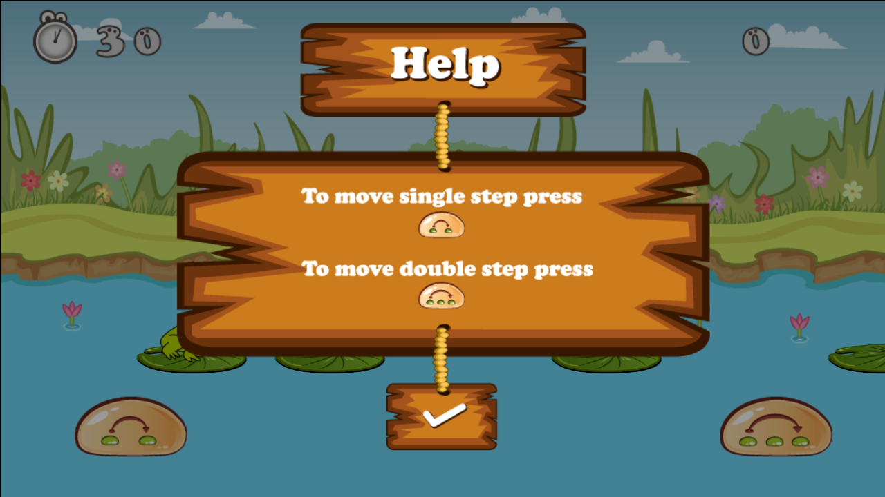 بازی بازی برای کمک به قورباغه برای پرش از برگ به برگ با ضربه زدن دکمه پرش تک و دوتایی است و یک امتیاز عالی کسب می کند.