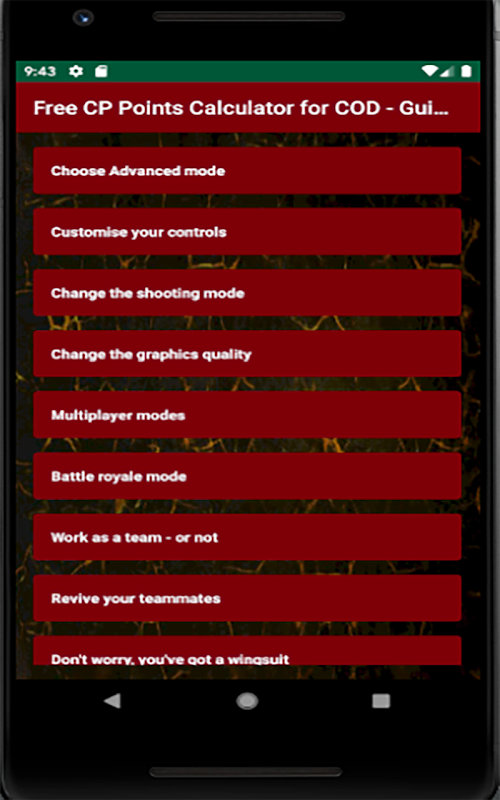 This app is for you. It's an amazing too that facilate to you to calculate your CP points. In this same App you are going the find the latest tips and tricks about the game COD Mobile.