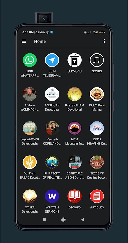 In this app, you'll be able to gain access to thousands of daily devotionals notes from your favorite ministers or ministries, including Open Heavens, Our Daily Manner, Our Daily Bread, Rhapsody of Realities, Seeds of Destiny, to name but a few!!