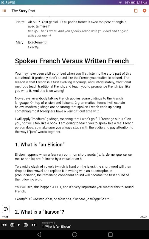 یادگیری فرانسوی روش هوشمند - رویکردی جدی برای یادگیری فرانسوی سنتی و مدرن. گرامر و واژگان به طور خاص برای انگلیسی زبانان توضیح داده شده است. هر چیزی را که یاد می گیرید با یک رمان مداوم و سرگرم کننده با دیالوگ ها/موقعیت های واقع گرایانه تمرین کنید.