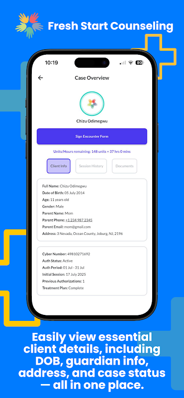 5. مدیریت اطلاعات مراجع: فوراً جزئیات ضروری مراجع مانند تاریخ تولد، اطلاعات سرپرست، آدرس و برنامههای درمانی را مشاهده کنید.
