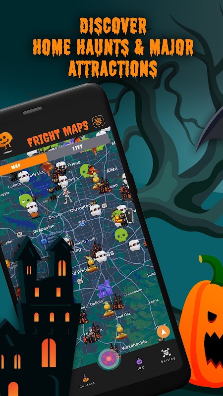 به طرفداران Fright خوش آمدید! اگر در این فصل هالووین به دنبال ترس واقعی هستید، دیگر به دنبال آن نباشید. FrightMaps تمام خانه های تزیین شده جن زده در جامعه و هر جاذبه خالی از سکنه در کشور را برای شما به ارمغان می آورد. بنابراین اگر زمان مورد علاقه شما حکاکی کدو تنبل، سوارکاری و پایان دادن به شب های خود در گورستان است، برنامه خود را پیدا کرده اید. این برنامه کاربر محور است، بنابراین اگر خانه ای تزئین شده برای هالووین دارید، می خواهیم به دنیا نشان دهید که چه چیزی این فصل را به طرز وحشتناکی بهترین می کند! حکاکی کدو تنبل؟ پر کردن آن مترسک؟ ! ما می خواهیم آن را ببینیم