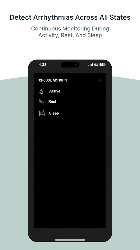 ECG درجه پزشکی ریتم های نامنظم قلب را در تمام مراحل روز شما از جمله خواب، استراحت و فعالیت فعال تشخیص می دهد.