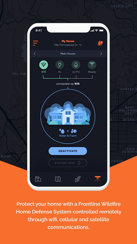 برای کسانی که تصمیم به نصب یک سیستم دفاعی خانه Frontline دارند، برنامه Frontline Wildfire Defense همچنین ویژگی های نظارت و کنترل از راه دور را برای آن سیستم ارائه می دهد. سیستم دفاع خانگی از آب و یک فوم اطفاء حریق کلاس A زیست تخریب پذیر برای هیدراته کردن مواد خانه و مناطق اطراف استفاده می کند تا از اشتعال اخگر و آتش سوزی نقطه ای جلوگیری شود. با سیستمهای ارتباطات اضافی (وایفای، تلفن همراه، ماهوارهای) و برق (باتری پشتیبان) تعبیهشده، سیستم دفاعی خانه Wildfire Frontline شما را قادر میسازد تا کنترل و محافظت از خانه خود را در طول یک رویداد آتشسوزی حفظ کنید. برای کسب اطلاعات بیشتر، به frontlinewildfire.com مراجعه کنید.