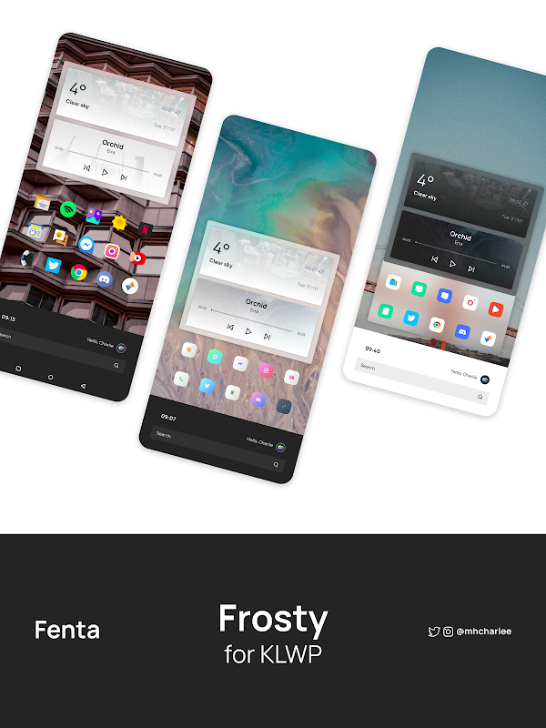 Frosty یک بسته KLWP با تنظیمات صفحه نمایش زیبا است.