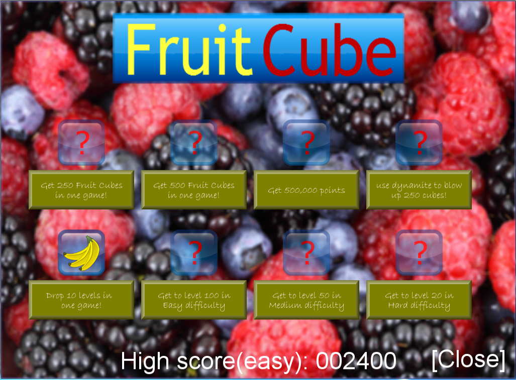 Fruit Cube is a fast & fun packed puzzle game where you try and match at least 3 or more Fruit Cubes to gain points against the timer! There are special blocks that will give you extra time or explode other blocks!