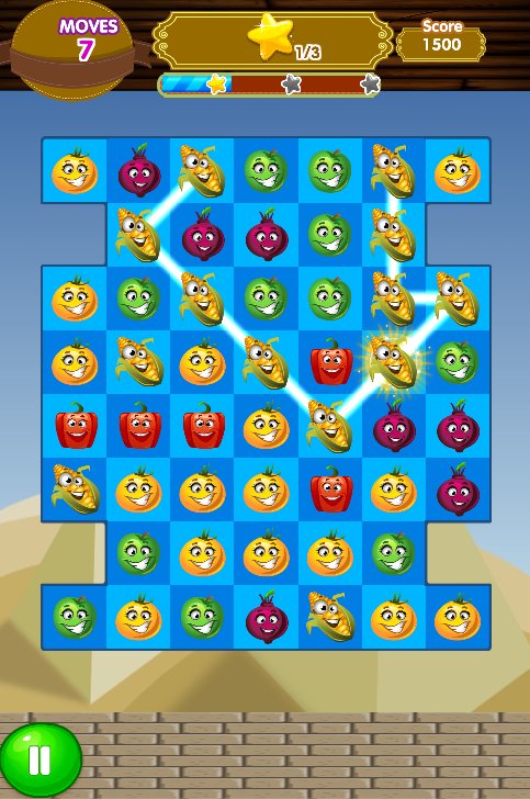 * Find the same fruits which you can link them by straight line, the same fruits will disappear.