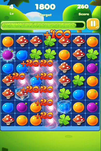 Get point by erasing Fruit. You can make longer chain of Fruit to get more points!