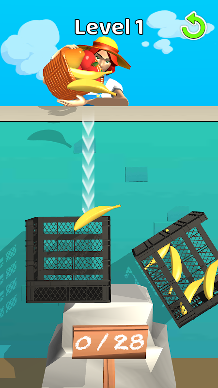 Fill the crate with fruits! Don't make them fall to the ground!
