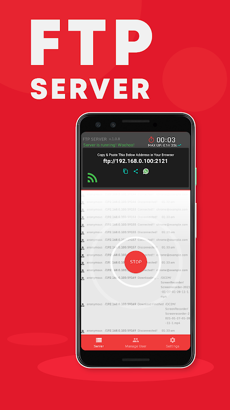 📱FTP Server - Transfer files between any devices like Phone to Computer or Computer to phone. In this app, you can create and manage multiple users. Essentially, this FTP SERVER app will help you in transferring files over the network.