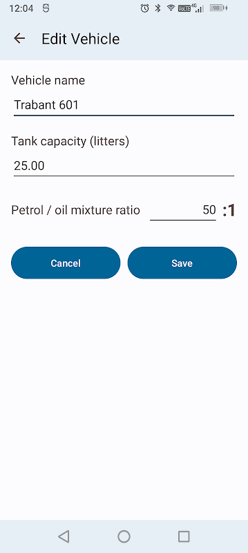 نسبت مخلوط مورد نظر را وارد کنید (یا از لیست وسایل نقلیه انتخاب کنید) و وارد کنید