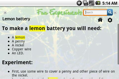 این برنامه شامل آزمایش های علمی که کاربر می تواند در خانه و آزمایش است که کاربر می تواند / معلم خود را به در مدرسه نق نقو.