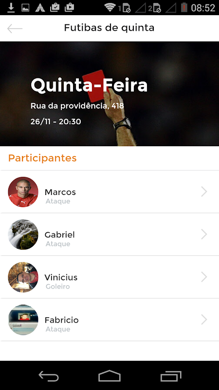 Como sabemos que imprevistos acontecem, ao chegar na quadra seus amigos podem fazer check-in, confirmando que já chegaram ao local do jogo.